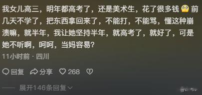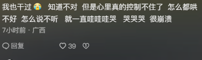 所以未经他人苦,莫劝他人善是真的,我们不了解这位妈妈到底发生了什么,只是大部分妈妈也会有带娃崩溃的时候,所以有人理解她。但是这种做法确实也会伤害孩子,所以我觉得当妈妈也是一门学问,我现在就在努力的学,因为我觉得我不是很会教育我的孩子。